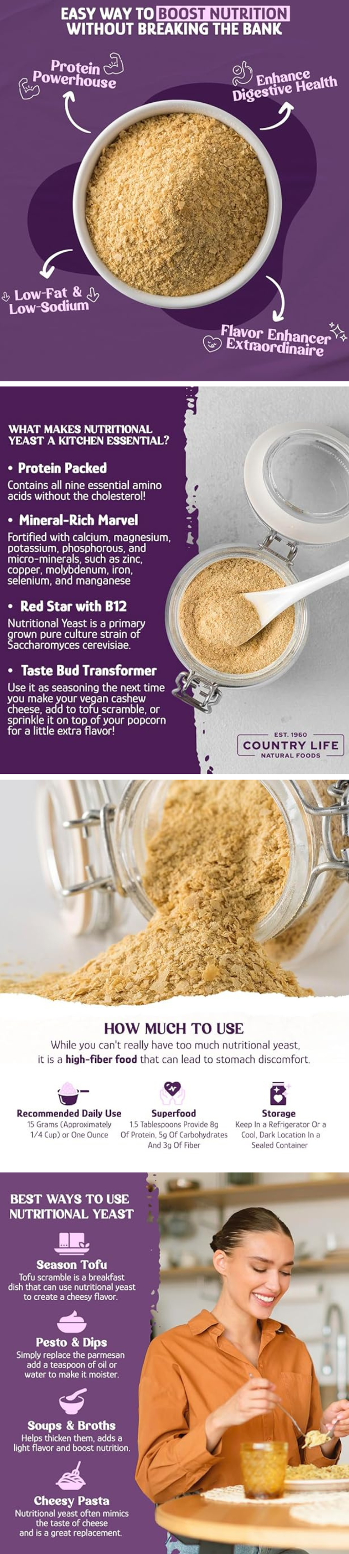 Once it’s grown (usually on molasses or sugar beet substrate), harvested, and dried, it’s turned into delicate flakes or fine powder with a unique umami-rich flavor. This natural, “cheesy” savoriness makes it a staple in many plant-based kitchens.