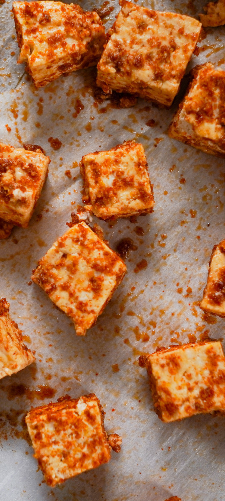 - Dry seasonings: Salt, pepper, smoked paprika, curry powder, garlic powder, or nutritional yeast. We highly recommend trying our range of tofu seasonings!
