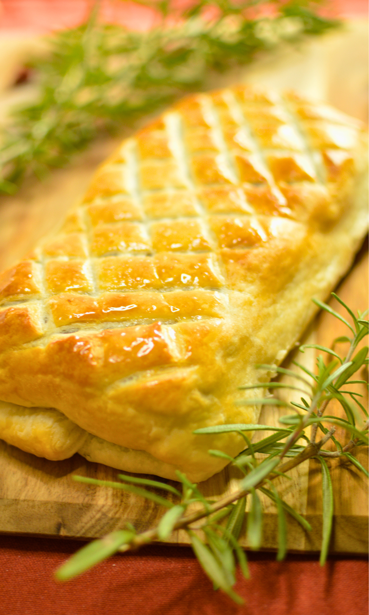 - Before serving, gently brush the Wellington with some melted vegan butter.