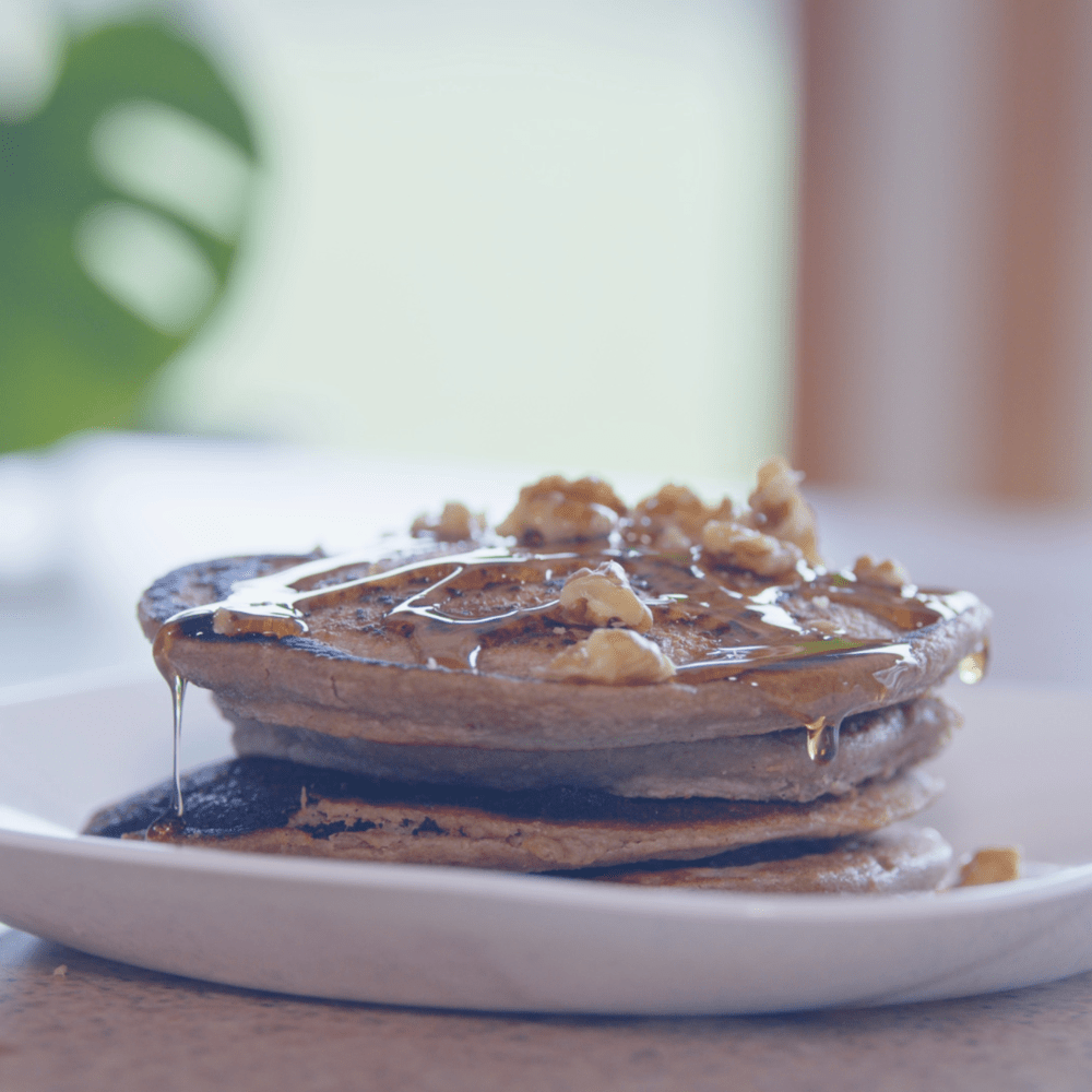 Fresh fruit make a great addition to these pancakes.  Or, put some frozen berries in a pot, stir regularly and simmer for 10-15 minutes to get a berry compote.