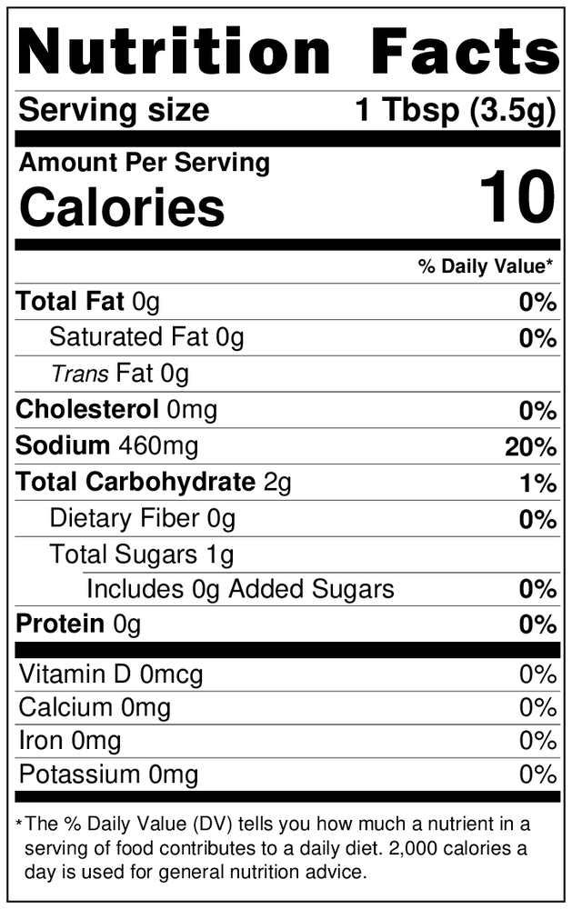 Ingredients: Dextrose, Salt, Autolyzed Yeast, Potato Flour, Pure Vegetable Oil (Sunflower Seed Oil), Carmel Powder, Celery, Onion Powder, Garlic Powder, Herbs, Sucrose
