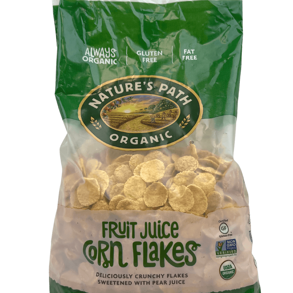 Our Fruit Juice Corn Flakes are large, thick, and deliciously crunchy, even in milk! Naturally sweetened with organic pear juice, it’s a scrumptious base for your morning breakfast, and a great ingredient for gluten-free cooking. A burst of sunshine in your bowl, it’s made with only three simple, whole food ingredients, and is certified gluten-free. You’ll love starting your day with this bright, crunchy, and tasty cereal, made with organic and non-GMO ingredients.